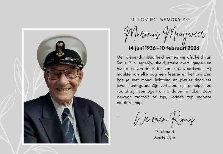 Met groot verdriet hebben wij kennisgenomen van het overlijden van Marinus Mooijweer.